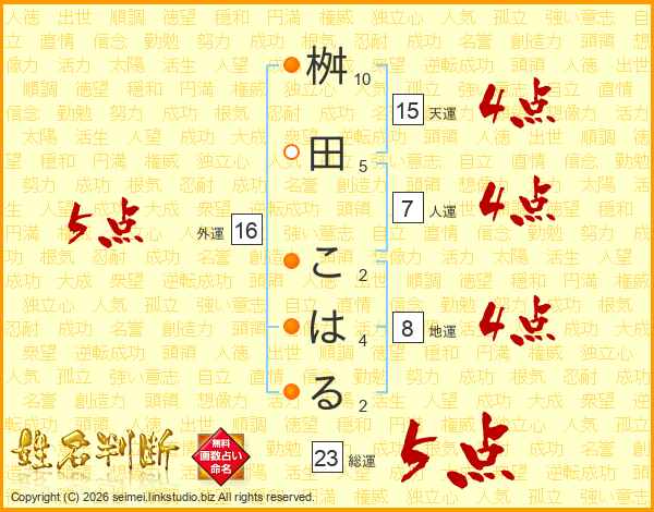 桝田こはるさんの外運は16画の5点!
