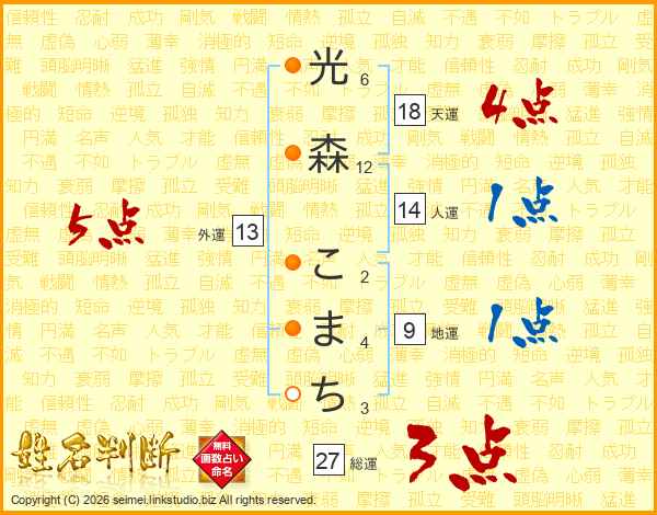 光森こまちさんの天運は18画の4点!