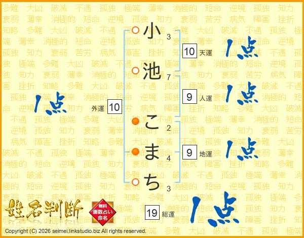 小池こまちさんの総運は19画の1点!