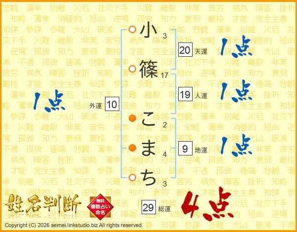 小篠こまちさんの総運は29画の4点!