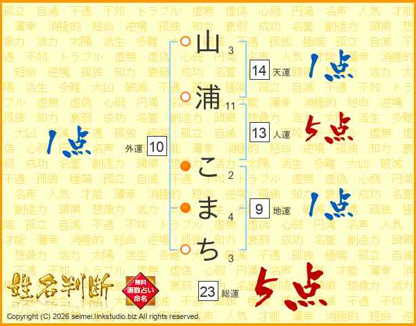 山浦こまちさんの人運は13画の5点!