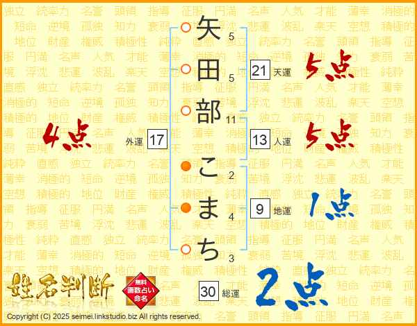 矢田部こまちさんの総運は30画の2点!