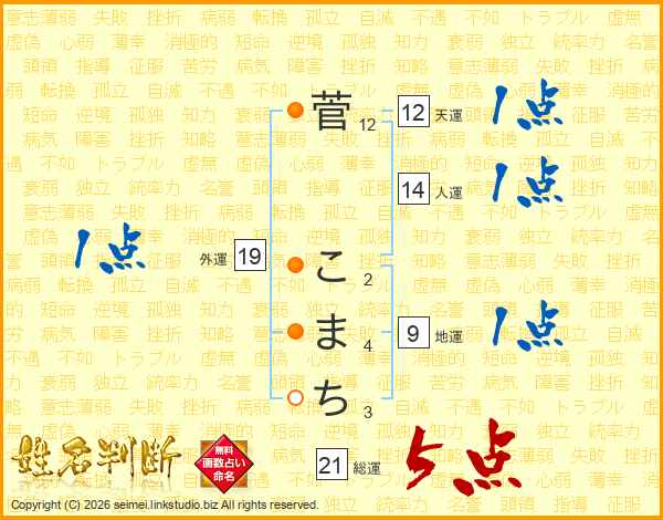 菅(12画) こ(2画)ま(4画)ち(3画)