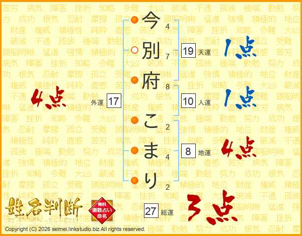今別府こまりさんの総運は27画の3点!