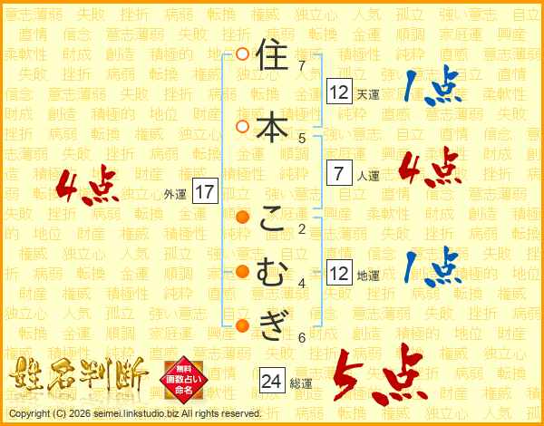 住本こむぎさんの総運は24画の5点!