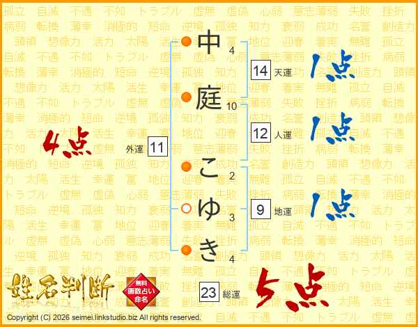 中庭こゆきさんの総運は23画の5点!