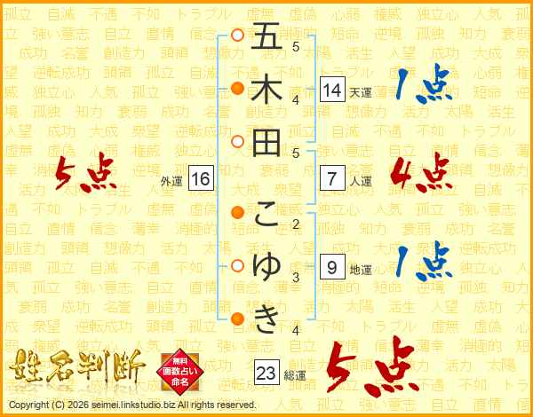 五木田こゆきさんの総運は23画の5点!