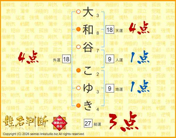 大和谷こゆきさんの総運は27画の3点!