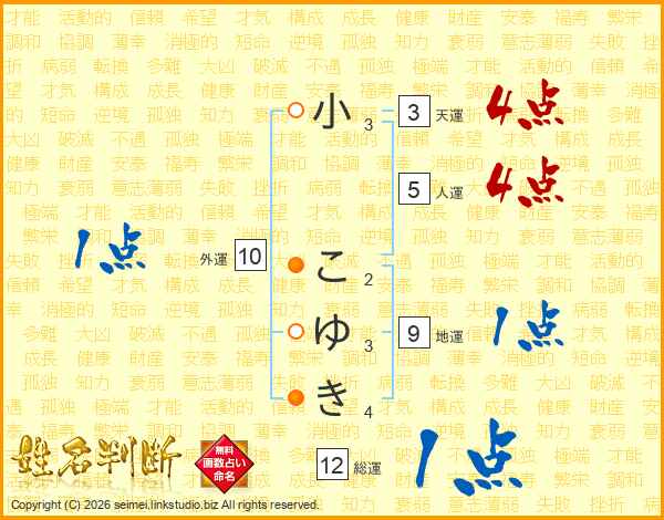 小(3画) こ(2画)ゆ(3画)き(4画)