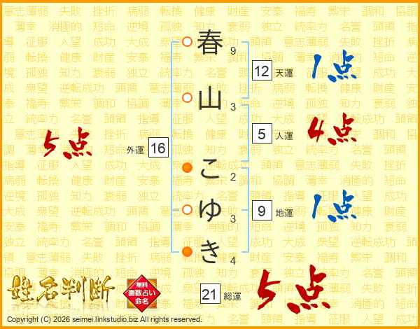 春山こゆきさんの外運は16画の5点!
