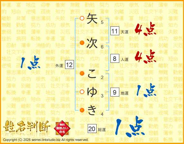 矢次こゆきさんの総運は20画の1点!