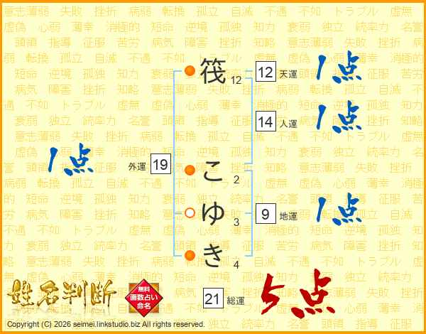 筏こゆきさんの総運は21画の5点!