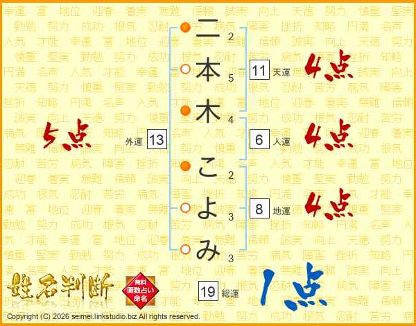 二本木こよみさんの外運は13画の5点!