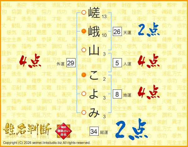 嵯峨山こよみさんの総運は34画の2点!