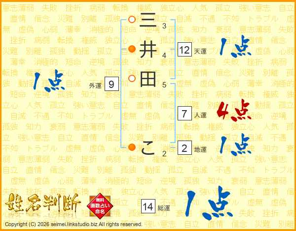 三井田こさんの総運は14画の1点!