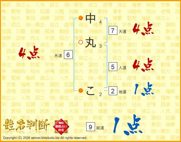 中丸こさんの天運は7画の4点!