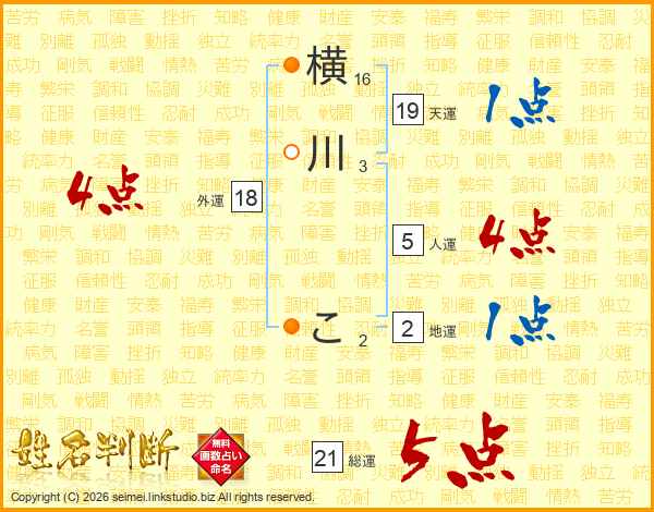 横川こさんの総運は21画の5点!
