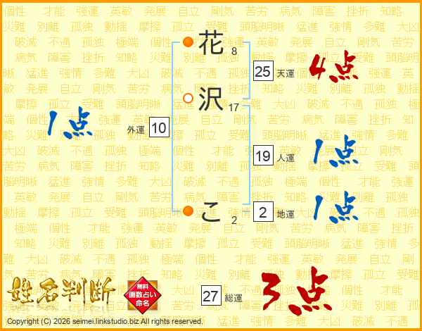 花沢こさんの天運は25画の4点!