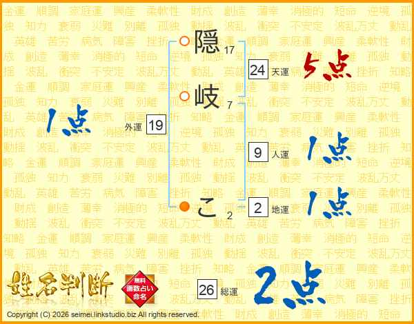 隠岐こさんの天運は24画の5点!