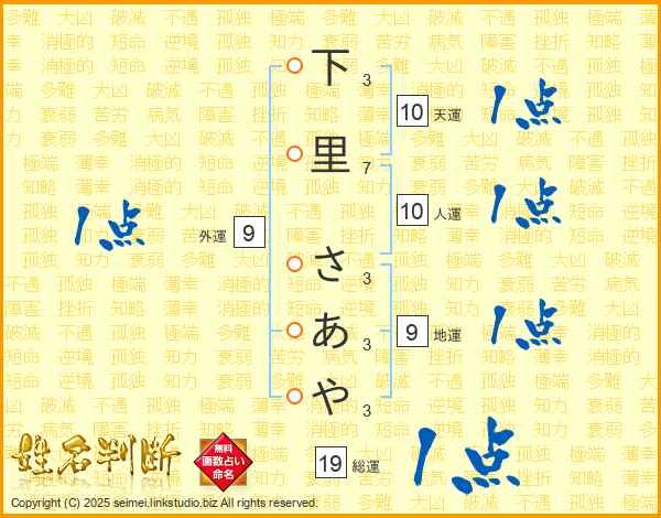 下(3画)里(7画) さ(3画)あ(3画)や(3画)
