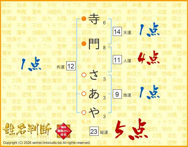 寺門さあやさんの総運は23画の5点!