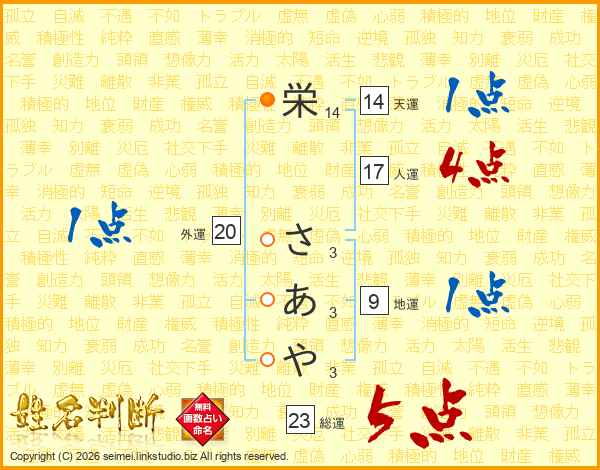 栄さあやさんの総運は23画の5点!