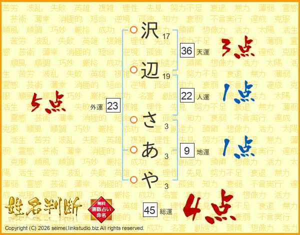 沢辺さあやさんの総運は45画の4点!