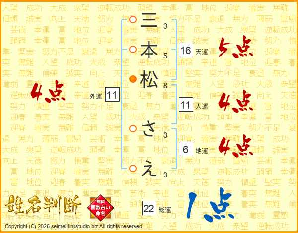 三本松さえさんの総運は22画の1点!