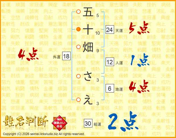 五十畑さえさんの天運は24画の5点!