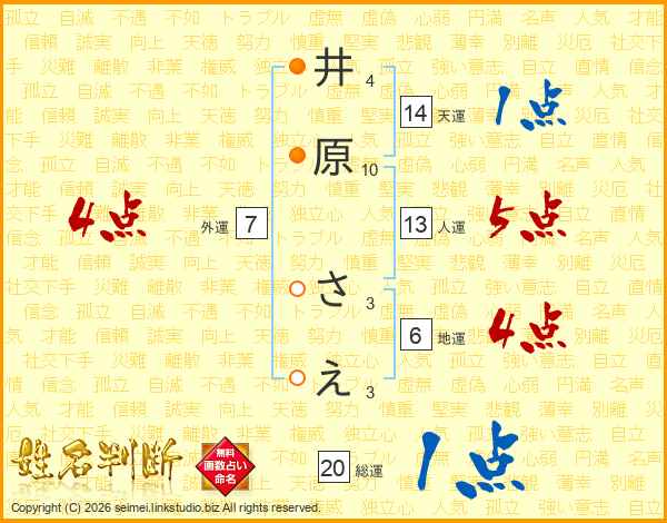 井原さえさんの総運は20画の1点!