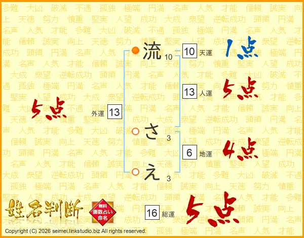 流さえさんの総運は16画の5点!