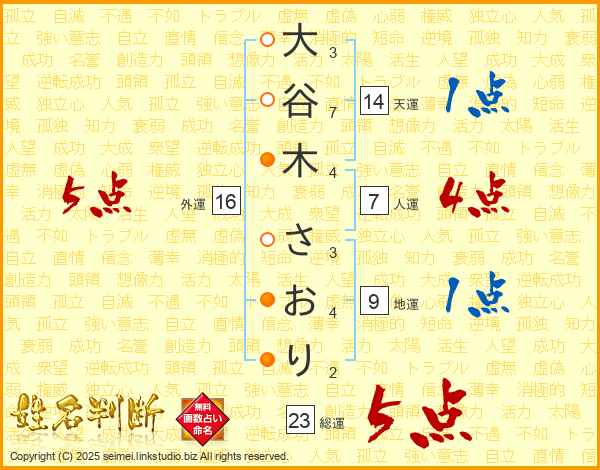 大谷木さおりさんの外運は16画の5点!