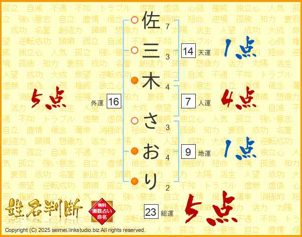 佐(7画)三(3画)木(4画) さ(3画)お(4画)り(2画)