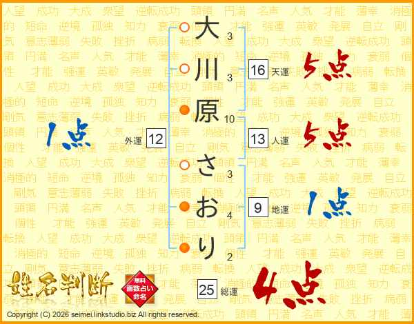 大川原さおりさんの総運は25画の4点!