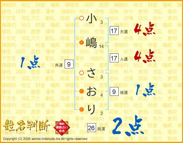 小嶋さおりさんの総運は26画の2点!