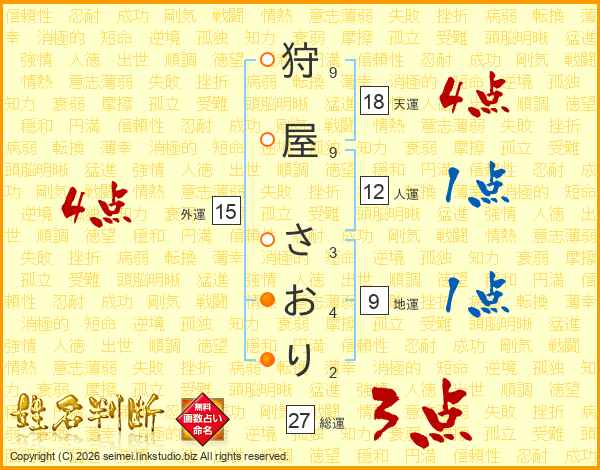 狩屋さおりさんの天運は18画の4点!