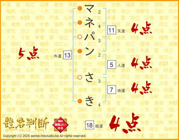 マ(2画)ネ(4画)パ(3画)ン(2画) さ(3画)き(4画)