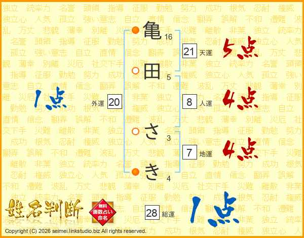 亀田さきさんの天運は21画の5点!