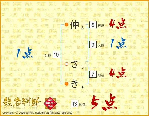 仲さきさんの総運は13画の5点!