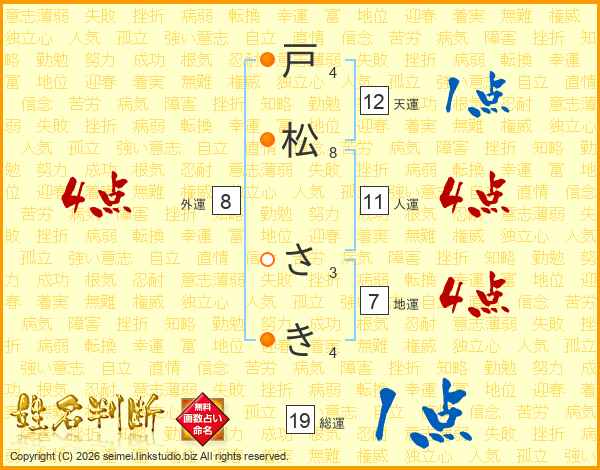 戸松さきさんの地運は7画の4点!