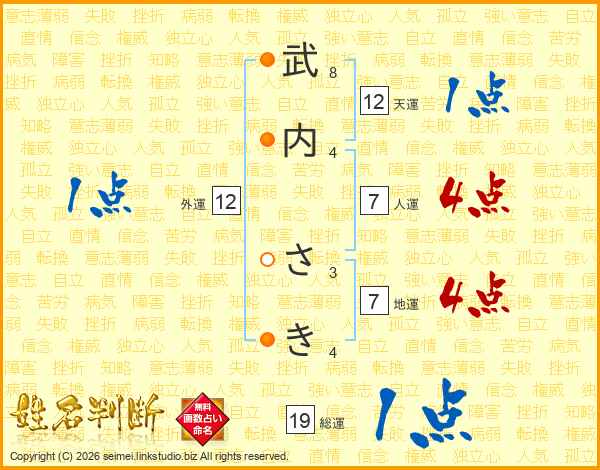 武内さきさんの総運は19画の1点!