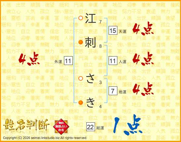 江刺さきさんの総運は22画の1点!