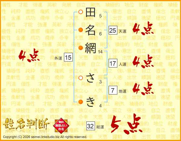 田名網さきさんの総運は32画の5点!