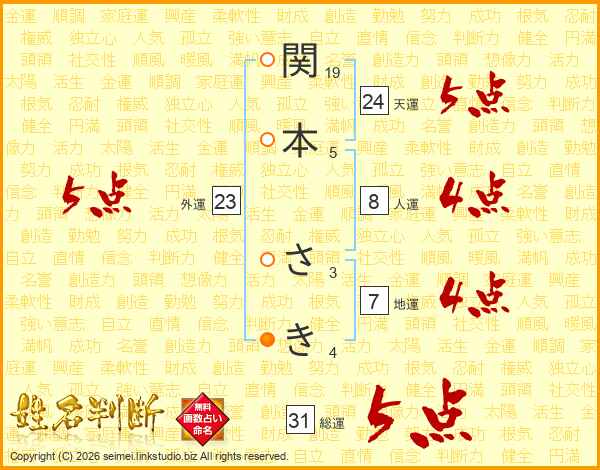 関本さきさんの総運は31画の5点!