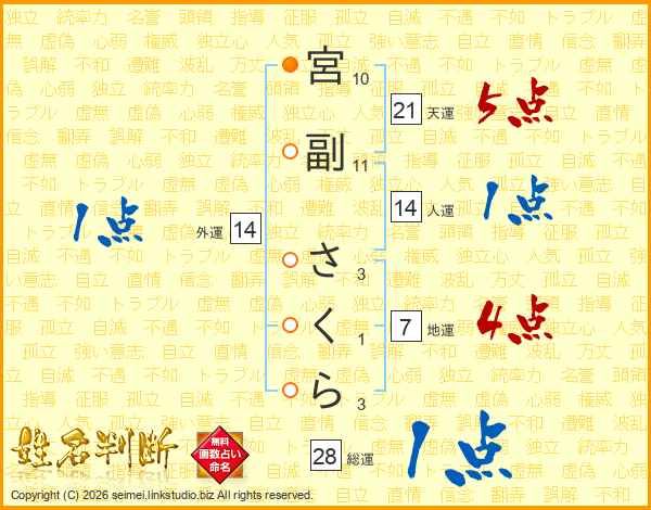 宮(10画)副(11画) さ(3画)く(1画)ら(3画)