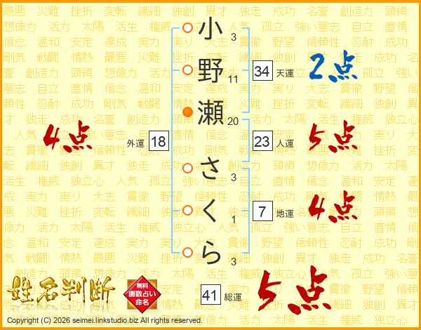 小野瀬さくらさんの総運は41画の5点!
