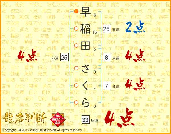 早稲田さくらさんの総運は33画の4点!
