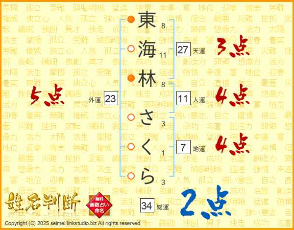 東(8画)海(11画)林(8画) さ(3画)く(1画)ら(3画)