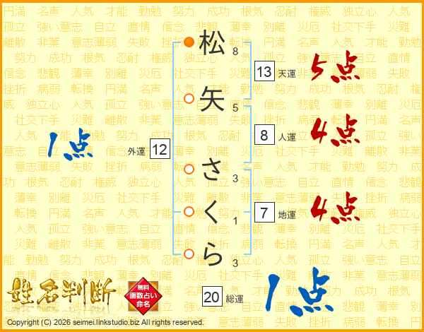 松(8画)矢(5画) さ(3画)く(1画)ら(3画)