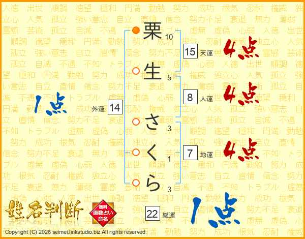 栗生さくらさんの総運は22画の1点!